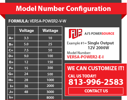 The VERSA-POWER SeriesTM is a 2U Power Supply that Provides up to 8000 Watts in a Single Output. Standard Output voltages include 3.3V, 5V, 12V, 24V, 28V & 48V that can be adjusted to suit your need.