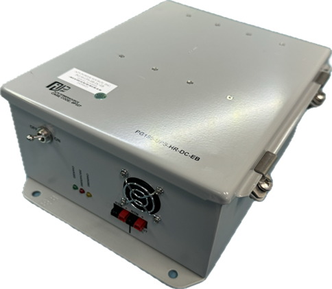 The PG150 utilizes the same proven full double conversion design of other PowergridM models in a highly portable half rack configuration for use with small man portable/deployable systems. The PG150 has an embedded Lithium Iron Phosphate Battery module within excess of 30 minutes of hold time. The unit supports two UPS/Battery with a 24VDC output and 12VDC input. The unit is equipped with multiple protection features, including over load, output short circuit, and over temperature.